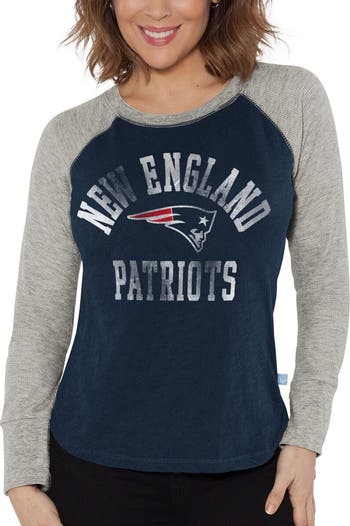 Women's G-III 4Her by Carl Banks Navy/Heather Gray New England Patriots Waffle Knit Raglan Long Sleeve T-Shirt