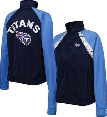 Stay stylish in Tennessee Titans team spirit with this Confetti track jacket. From G-III 4Her by Carl Banks, it features the team's logo on the back and a dazzling wordmark on the back. The contrast-color raglan sleeves provide extra comfort, perfect for Tennessee Titans game days.