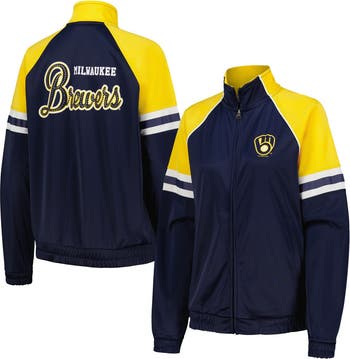 This lightweight First Place full-zip Track Jacket by G-III 4Her by Carl Banks is the perfect game day layer. Signature Milwaukee Brewers colors and graphics create the ultimate fan look. Roomy raglan sleeves allow for a natural range of motion so you can comfortably root for your team.