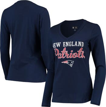 Celebrate your unwavering New England Patriots loyalty with the Women's G-III 4Her by Carl Banks Navy New England Patriots Post Season Long Sleeve V-Neck T-Shirt. This officially licensed tee features screen print graphics that proudly display your allegiance to the New England Patriots. Its comfortable cotton construction ensures a relaxed fit, perfect for cheering on your team from the stands or showing your support wherever you go.