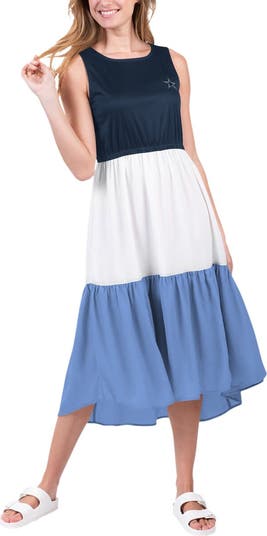 Combine your eye for fashion and Dallas Cowboys fandom with this 12th Inning dress from G-III 4Her by Carl Banks. It features a unique colorblock design and the Dallas Cowboys logo on the left side of the chest to showcase your unwavering spirit. The elastic waistband adds shape while the flowy construction gives it a more relaxed and comfortable look.