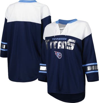 Put eyes on your Tennessee Titans pride with this Double Team Lace-Up T-shirt from G-III 4Her by Carl Banks. It features three-quarter sleeves with dropped shoulders for ease of movement. In addition, the signature Tennessee Titans graphics and colors let everyone know who you root for on game day.