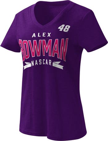 The Women's G-III 4Her by Carl Banks Purple Alex Bowman Dream Team V-Neck T-Shirt is the perfect way to show your support for Alex Bowman and the NASCAR team. Made from a comfortable cotton and polyester blend, this V-neck T-shirt features vibrant graphics that proudly display your Alex Bowman and NASCAR fandom. Whether you're cheering from the stands or simply showing your support, this T-shirt is the perfect way to represent your favorite driver and team.