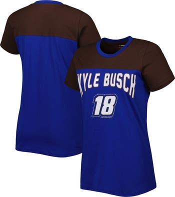 Celebrate your unwavering support for Kyle Busch with the Women's G-III 4Her by Carl Banks Royal/Black Kyle Busch Box Score T-Shirt. This stylish tee features eye-catching rhinestone details and a comfortable rib-knit collar, making it a must-have for any Kyle Busch fan. Show your NASCAR pride and represent your favorite driver with this officially licensed Kyle Busch T-shirt.