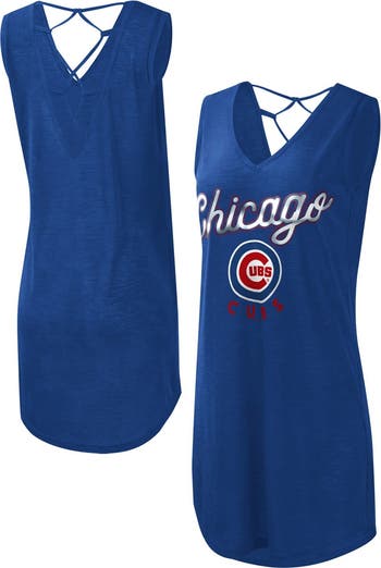 Keep your Chicago Cubs style on point at the beach or pool with this Game Time Beach Cover-Up dress from G-III 4Her by Carl Banks. It features sleek Chicago Cubs graphics printed on the front and an elegant lattice design on the back. Plus, the slub design gives this V-neck dress a translucent look.