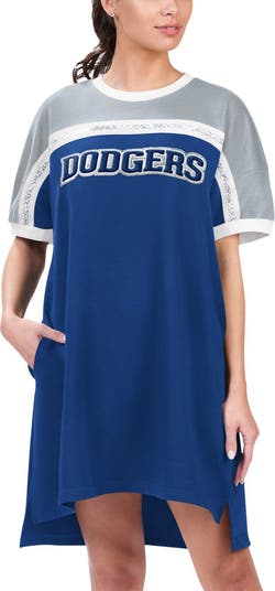 Knock comfort and fashion out of the park on Los Angeles Dodgers game day in this Circus Catch Sneaker dress. Its original design from G-III 4Her by Carl Banks features sparkly details on the team name and stripes. Pockets provide a convenient place to keep essentials easily accessible, and the loose fit gives this Los Angeles Dodgers dress a relaxed feel for more comfortable wearing inning after inning.