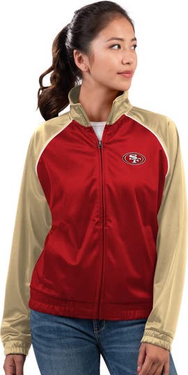 Show your San Francisco 49ers pride with this Replay Full-Zip Track Jacket from G-III 4Her by Carl Banks. This lightweight jacket is perfect for mild temperatures, making it an excellent choice for layering on game days or casual outings. The team logo embroidered on the left chest and the screen print wordmark with reflective details across the upper back proudly display your San Francisco 49ers pride.