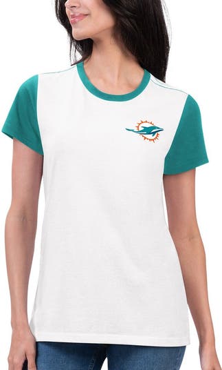 Women's G-III 4Her by Carl Banks White/Aqua Miami Dolphins Fashion Illustration T-Shirt