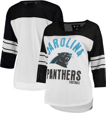 Women's G-III 4Her by Carl Banks White/Black Carolina Panthers First Team Three-Quarter Sleeve Mesh T-Shirt