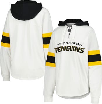 Women's G-III 4Her by Carl Banks White/Black Pittsburgh Penguins Goal Zone Long Sleeve Lace-Up Hoodie T-Shirt