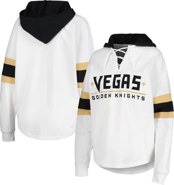 Women's G-III 4Her by Carl Banks White/Black Vegas Golden Knights Goal Zone Long Sleeve Lace-Up Hoodie T-Shirt