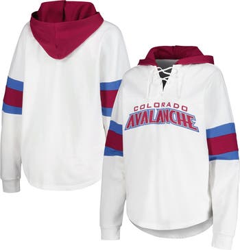 Women's G-III 4Her by Carl Banks White/Burgundy Colorado Avalanche Goal Zone Long Sleeve Lace-Up Hoodie T-Shirt