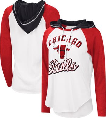 Women's G-III 4Her by Carl Banks White Chicago Bulls MVP Raglan Hoodie Long Sleeve T-Shirt