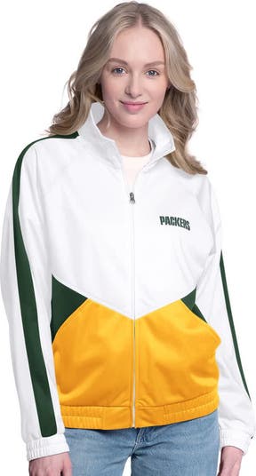 Women's G-III 4Her by Carl Banks White/Green Green Bay Packers Rally Rhinestone Full-Zip Track Jacket