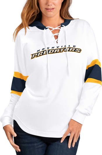 Women's G-III 4Her by Carl Banks White/Navy Nashville Predators Goal Zone Long Sleeve Lace-Up Hoodie T-Shirt