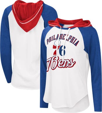 Women's G-III 4Her by Carl Banks White Philadelphia 76ers MVP Raglan Hoodie Long Sleeve T-Shirt