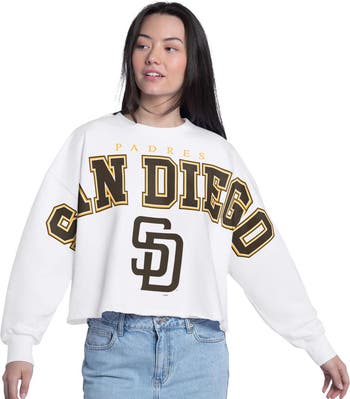 When the San Diego Padres take the field, showcase your unwavering team pride in this Bleachers Cropped Pullover Sweatshirt from G-III 4Her by Carl Banks. Designed with a fashion raw edge double hem and dropped shoulders, this lightweight sweatshirt is perfect for those mild game days or casual outings. Full, cross-body and sleeves screen-print graphics add a bold touch, while the blend of cotton and polyester ensures cozy comfort and lasting wear. Show off your team spirit in style with this cropped pullover.