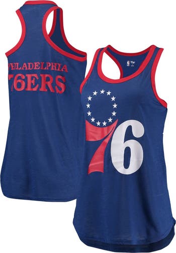 The Women's G-III Sports by Carl Banks Royal Philadelphia 76ers Showdown Scoop-Neck Racerback Tank Top is the perfect way to show your support for the Philadelphia 76ers. With its burnout design and rounded droptail hem, this tank top is both stylish and comfortable. The scoop neck and screen print graphics add a touch of flair, while the polyester material ensures you'll stay cool and dry all game long. Whether you're cheering on the 76ers from the stands or just relaxing at home, this tank top is a must-have for any fan.
