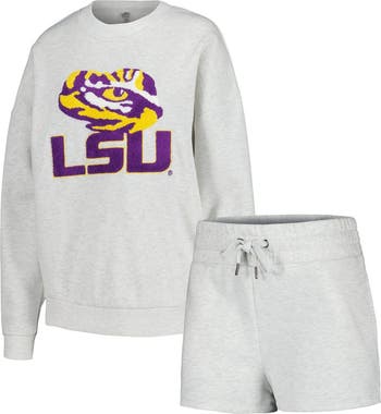 Women's Gameday Couture Ash LSU Tigers Team Effort Pullover Sweatshirt & Shorts Sleep Set