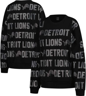 Women's Gameday Couture Black Detroit Lions Oversized Hype Era Rhinestone Text Sweatshirt