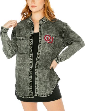 Women's Gameday Couture Charcoal Oklahoma Sooners Multi-Hit Tri-Blend Oversized Button-Up Denim Jacket
