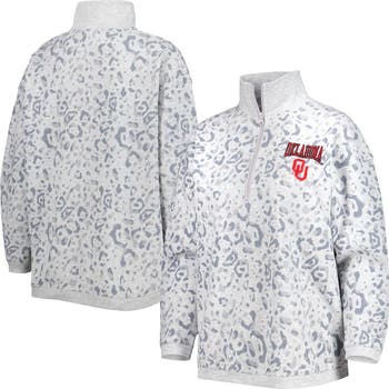 Women's Gameday Couture Heather Gray Oklahoma Sooners Leopard Quarter-Zip Sweatshirt