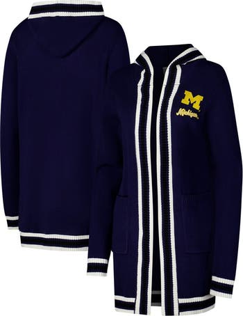 Women's Gameday Couture Navy Michigan Wolverines Stripe Detail Tri-Blend Hoodie Cardigan Sweater
