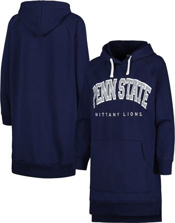 Your game day gear has a new flair to it with the addition of this hooded Gameday Couture Take a Knee sweatshirt dress. It's designed with signature Penn State Nittany Lions colors and graphics that make a statement about your team allegiance. Raglan sleeves offer more arm room so you can cheer or lounge comfortably.