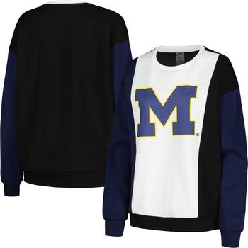 Women's Gameday Couture White/Black Michigan Wolverines Vertical Color-Block Pullover Sweatshirt
