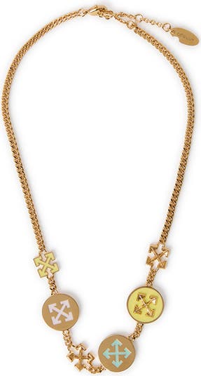 GOLD PLATED - ARROW DESIGN - ARROW BUTTON NECKLACE BRASS + ENAMEL