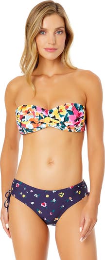 Stand out at the beach with our Gradient Floral Twist Bandeau Bikini Swim Top. This tankini swim top features a bandeau style cut with a stunning floral print, perfect for trendy beach style. The adjustable and removable strap gives you different ways to style your look, while built-in boning provides form and support. Shirred details at the side will shape and flatter your curves, whether you opt for a strapless style or not. Pair this with any Anne Cole bottom for a breezy beach look..Model is wearing a size small She usually wears a standard US dress size 4/6, bra size 32C, and has a 25” waist and 36” hipsAdjustable Straps