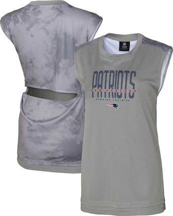 The Women's Gray New England Patriots No Sweat Tank Top is the perfect way to show your support for the New England Patriots. Made from lightweight, breathable polyester, this tank top is comfortable for game day or any day. Screen print graphics and a tie-dye pattern give it a stylish look, while the crew neck and side split hem add comfort. Whether you're cheering on the Patriots from the stands or relaxing at home, this tank top is a must-have for any fan.