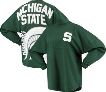 Celebrate your unwavering Michigan State Spartans spirit with the Women's Green Michigan State Spartans Loud n Proud Spirit Jersey T-Shirt. Proudly display your Spartans allegiance with low puff screen print graphics, finished in the USA. Rib-knit cuffs and a rounded hem ensure a comfortable fit, making it the perfect choice for game days or any day you want to show your support for the Michigan State Spartans.