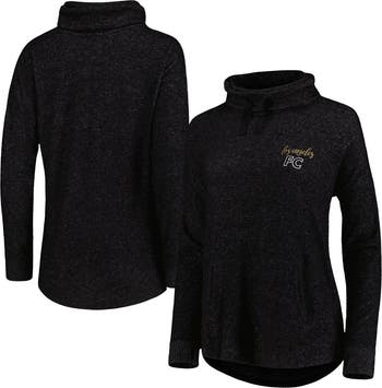 The Women's Heathered Black LAFC Cuddle Tri-Blend Pullover Sweatshirt is the perfect way to show your support for the LAFC. Made from a soft and comfortable viscose, polyester, and elastane blend, this sweatshirt is perfect for mild temperatures. The cowl neck with drawstring and front pouch pocket add a touch of style, while the screen print graphics and thumbhole in cuffs show off your LAFC pride. Whether you're cheering on the team at the stadium or just relaxing at home, this sweatshirt is sure to keep you comfortable and stylish.