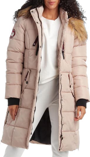 Embrace the cold in style with the CANADA WEATHER GEAR Women's Heavyweight Long Length Bubble Puffer Parka. Designed to keep you warm during even the most frigid winter days, this jacket is the ultimate choice for cold-weather protection. With its long-length design and premium insulation, this puffer coat locks in warmth while offering a sleek, stylish silhouette. The detachable faux fur-trimmed hood adds versatility and a touch of elegance, while the water-resistant and windproof construction ensures you're shielded from the elements. The quilted design enhances insulation, keeping you cozy from head to toe. Whether you're navigating the city or spending a day in the snow, this puffer jacket is built to handle it all. Functional details like ribbed cuff sleeves, double chest zip pockets, and a double snap-close collar provide both practicality and style. The side zipper adds extra mobility, making this coat easy to wear while maintaining its flattering fit. Pair it with your favorite winter boots for a chic, cold-weather look that’s both warm and stylish.