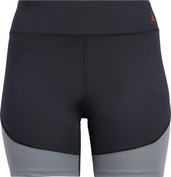 Mid-rise bike shorts designed with comfortable stretch feature anti-chafe flatlock seams in a sporty color-block design.