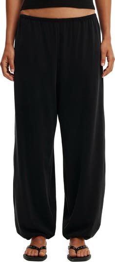 The honey balloon pant features a ralaxed, mid low rise fit made to live in. with elastic waistband for comfort and in seam side pockets