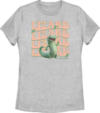 - Strut your stuff with this stylish new women's t-shirt that is perfect for the whole family! Featuring Tom Lizard striking a happy pose, stars, lizard icons, and his name repeated in retro-style font across the front.