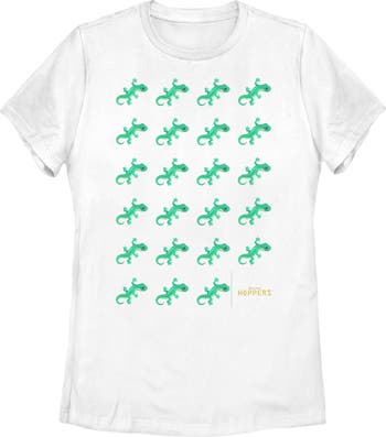 Hop into happiness with this officially licensed Hoppers graphic apparel, inspired by the all-new Disney Pixar movie! This hilarious Women's Tom Lizard Icon Grid Graphic T-Shirt features a vibrant array of Tom Lizard icons playfully displayed across the front, along with the movie logo in a dazzling yellow hue. Embrace your unique style and show off your love for all things lizard with these fantastic Hoppers designs. Get yours today and bring some fun to your casual outfits!