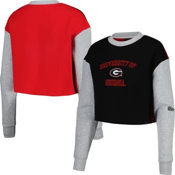 The Women's Hype and Vice Black Georgia Bulldogs Colorblock Rookie Crew Pullover Sweatshirt is the perfect way to show your support for the Georgia Bulldogs. Made from a comfortable cotton and polyester blend, this midweight sweatshirt features a cropped, raw-edge hem and embroidered graphics that proudly display your Georgia Bulldogs pride. The fleece lining provides added warmth during chilly game days, making it the perfect choice for any devoted fan.