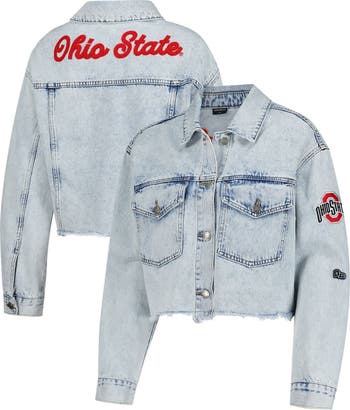 Women's Hype and Vice Denim Ohio State Buckeyes Lightwash Cropped Button-Up Jean Jacket