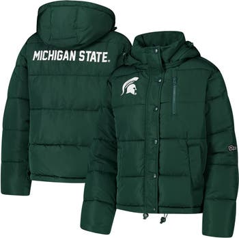 Show off your Michigan State Spartans pride in warmth and style with this Hype and Vice Puffer Jacket. This stylish puffer jacket features a detachable zipper hood for versatility and an adjustable drawstring waist for a customizable fit. The full-snap overlay and seam design create a relaxed and comfortable silhouette, while the embroidered team logo and school wordmark proudly display your Michigan State Spartans spirit.