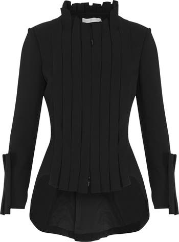 - Model is 178 cm/ 5'10" and is wearing a size 38 Tailored White jacket with box pleats details Double zip front closure. 100% Polyester; Lining: 96% Polyester, 4% Elastane Made with an extremely resilient fiber that is smooth, lightweight and resistant to creasing Follow care instructions on garment Anne Fontaine Essentials Collection
