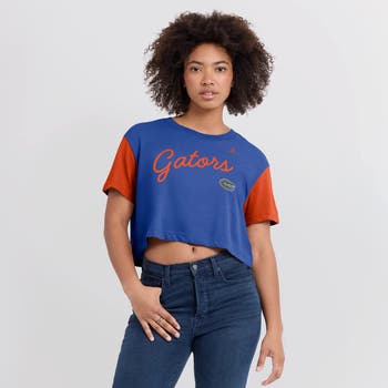 Women's Jordan Brand Royal/Orange Florida Gators Color-Block Script Dri-FIT Cropped T-Shirt