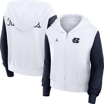 Women's Jordan Brand White North Carolina Tar Heels Cropped Athletic Prep Color Block Script Full-Zip Hoodie