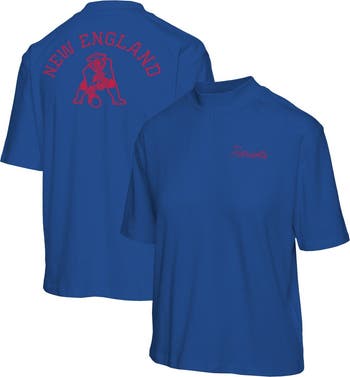 The Junk Food Women's Junk Food Royal New England Patriots Half-Sleeve Mock Neck T-shirt is the perfect way to show unwavering support for the New England Patriots. With embroidered and screen print graphics, this slightly cropped fit t-shirt is sure to turn heads. Made from soft cotton, this t-shirt is comfortable and breathable, perfect for cheering on the Patriots from the stands or from the comfort of your own home.