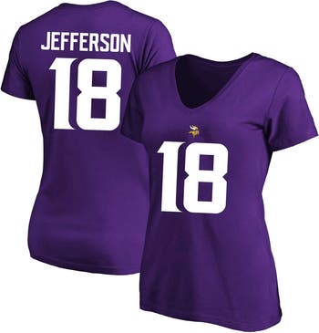 Justin Jefferson is your favorite player, and for good reason. Show him your support by grabbing this Minnesota Vikings Plus Size Fair Catch Name & Number V-Neck T-Shirt. It features bold Minnesota Vikings and Justin Jefferson graphics, so no one will be able to question where your allegiance lies every time you rock this sweet gear.