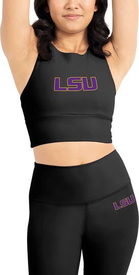 Whether you're working out or running some errands, do so in fashionable comfort with this Bra and Leggings set by Kadi Brand. Both pieces offer buttery soft fabric and moisture-wicking fabric technology to keep you fresh and comfortable throughout the day. The vibrant LSU Tigers graphics and the trendy midi construction of the top ensure your love for your favorite college squad is never questioned.