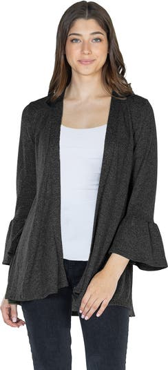 Womens Knit Three Quarter Bell Sleeve Open Cardigan
