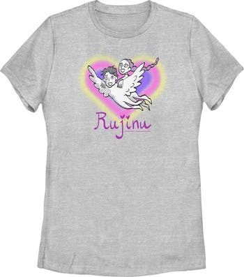 Prepare for debut with these incredible designs from the new, top-charting Netflix Film: K-Pop Demon Hunters! Dance to Soda Pop or Takedown with this Women's Fan Art Rujinu Graphic T-shirt featuring a cute fan art of Rumi and Jinu soaring through the sky with a colorful heart in the background and the word "Rujinu" printed below. These designs are going to be everything you can think of, so gear up to take all demons down while looking like the greatest idol the world has ever seen with out-of-this-world, officially licensed K-Pop Demon Hunters apparel!